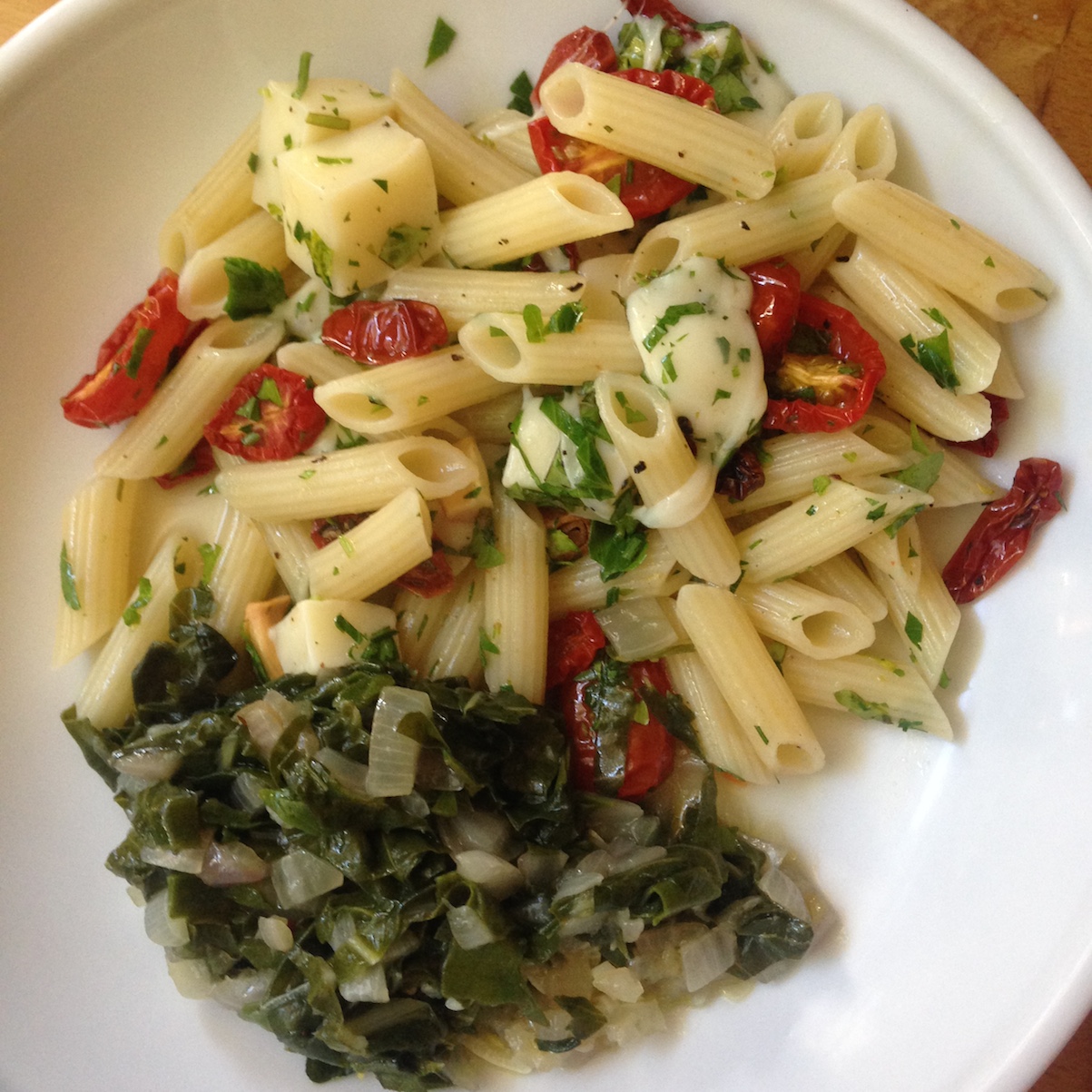 Last week I deviated from the meal plan for pasta day because the second to last week of school is nothing if not bonkers. It was a good deviation because it ended up being an improvised/sort of borrowed from Colu Henry’s Back Pocket Pasta tomato salad pasta spiked with chunks of fresh mozzarella, chopped up fresh parsley, basil, and oregano, and, crucially, slow roasted tomatoes from Smitten Kitchen. She’s right – they belong in your mouth. Just look at how summery and delicious this looks: